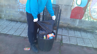 Dentro del Programa ALDEA, nos encontramos desarrollando la actividad "Investigando los residuos". En este caso son los residuos del centro y la actividad la desarrollaron los alumnos de F.P.B. En primer lugar, después de un recreo, vaciamos todas las papeleras del recreo y después clasificamos los residuos en diferentes espuertas.